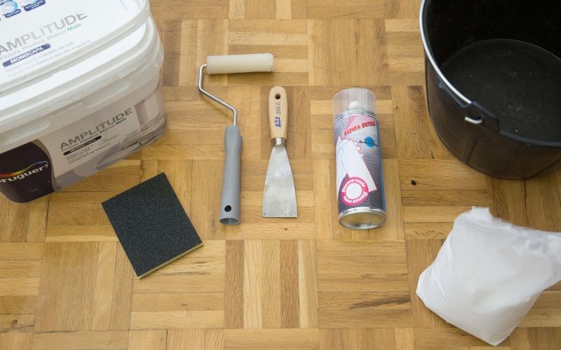 Una vez hayas lijado bien todas las zonas rascadas con la espátula o dañados como consecuencia del paso del tiempo, procede a aplicar la masilla en forma de plasta. Este tipo de masilla es la más recomendable para llevar a cabo este tipo de trabajos ya que se moldea en la pared muy fácilmente.