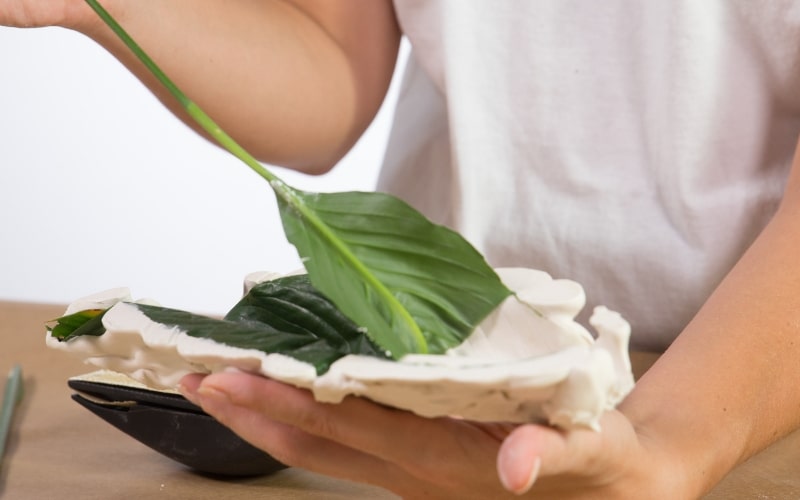 Manualidades con yeso: plato en forma de hoja