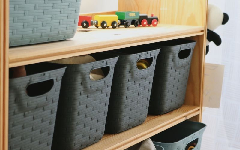Por último, coloca las cestas multiusos sobre las baldas y úsalas para organizar tus objetos